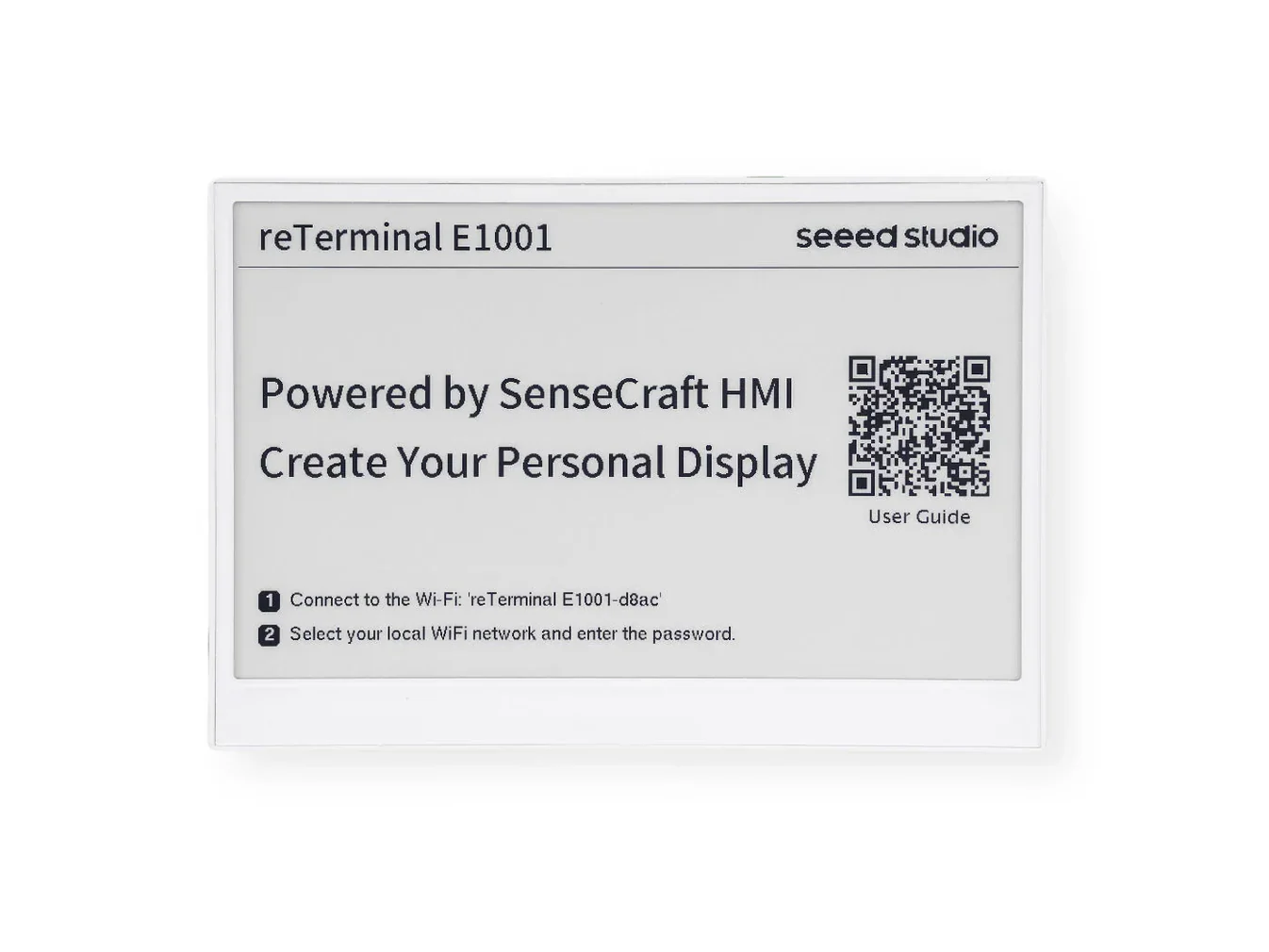 The reTerminal E1001 is a hardware device that incorporates a 7.5-inch monochrome electronic ink display. While the E1002 version with color exists, for this project, I preferred having only two colors.