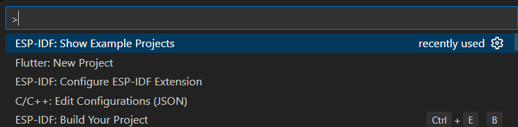You can skip cloning the repository and open examples directly from VSCode using the command palette in the ESP-IDF extension. Just type ESP-IDF: Show examples and a window will open where you can select and open each example individually. (If you have multiple versions of ESP-IDF installed, it will prompt you to choose one to view the examples with.)Once you select a project, it will ask you to choose the path where the test project should be saved.